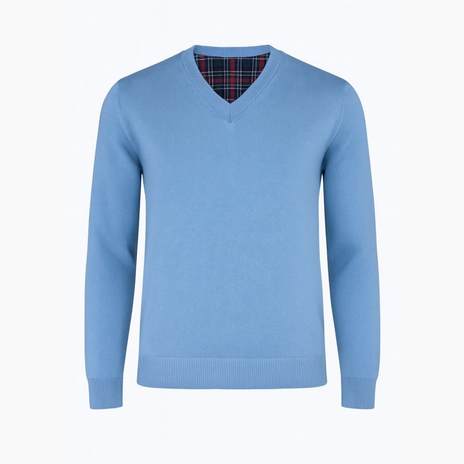 Adriano Guinari V-nyakú pamut pulóver – klasszikus kék színben
