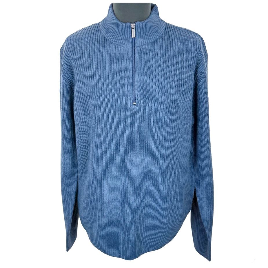 Stílus és szín: A kék szín sokféle ruhadarabbal kombinálható, így könnyen beleillik a mindennapi ruhatárba. A zippes nyakú pulóver sportos, ugyanakkor elegáns is lehet, a szín és a dizájn miatt.