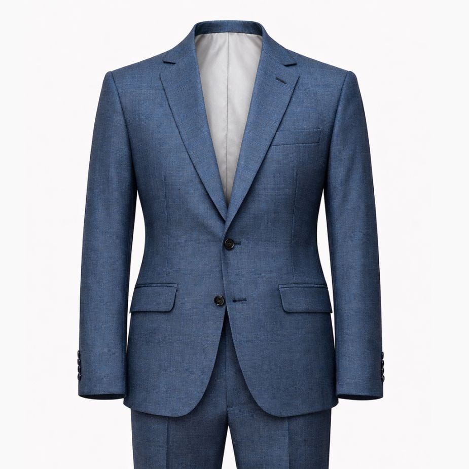 A slim fit szabás szűkebb fazon, ezért inkább karcsúbb alkatra ajánlott. A polyester domináns aránya miatt az anyag kevésbé természetes tapintású, mint a magas gyapjútartalmú öltönyök, illetve melegebb környezetben kevésbé szellős lehet.