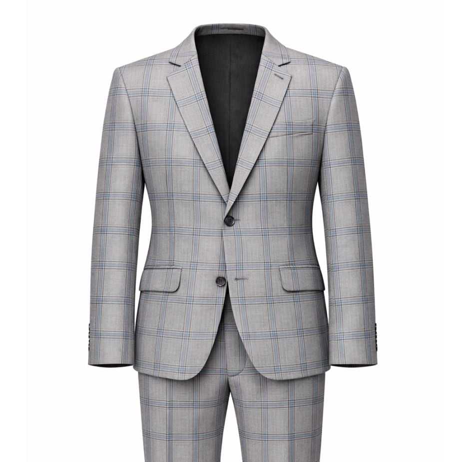 Felippe slim fit öltöny – szürke, barna-kék kockás kivitel