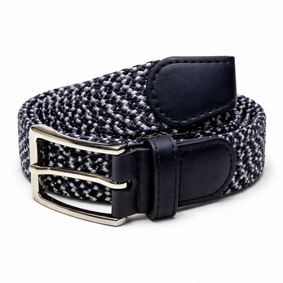 A sötétkék-fehér színkombináció modern és stílusos megjelenést biztosít. Az öv gumis kialakítása lehetővé teszi a kényelmes viseletet egész nap. Ideális választás mindennapi használatra vagy különleges alkalmakra is.